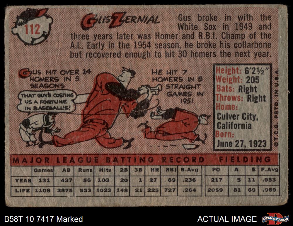 1958 Topps #112 Gus Zernial