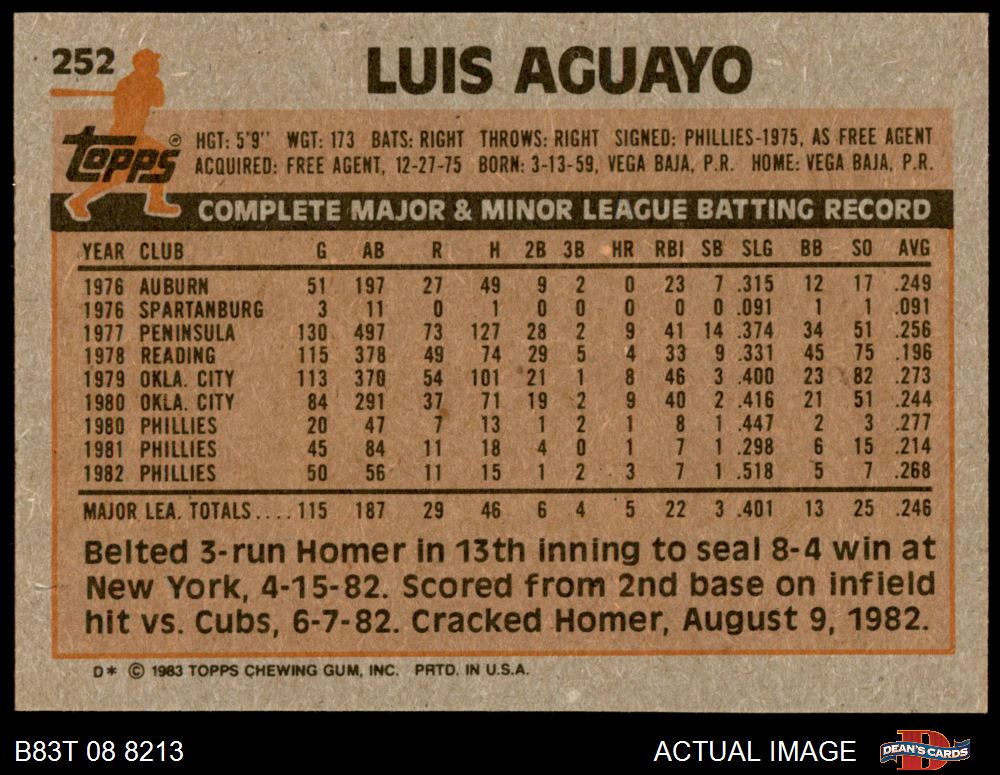 1983 Topps #252 Luis Aguayo 8 - NM/MT