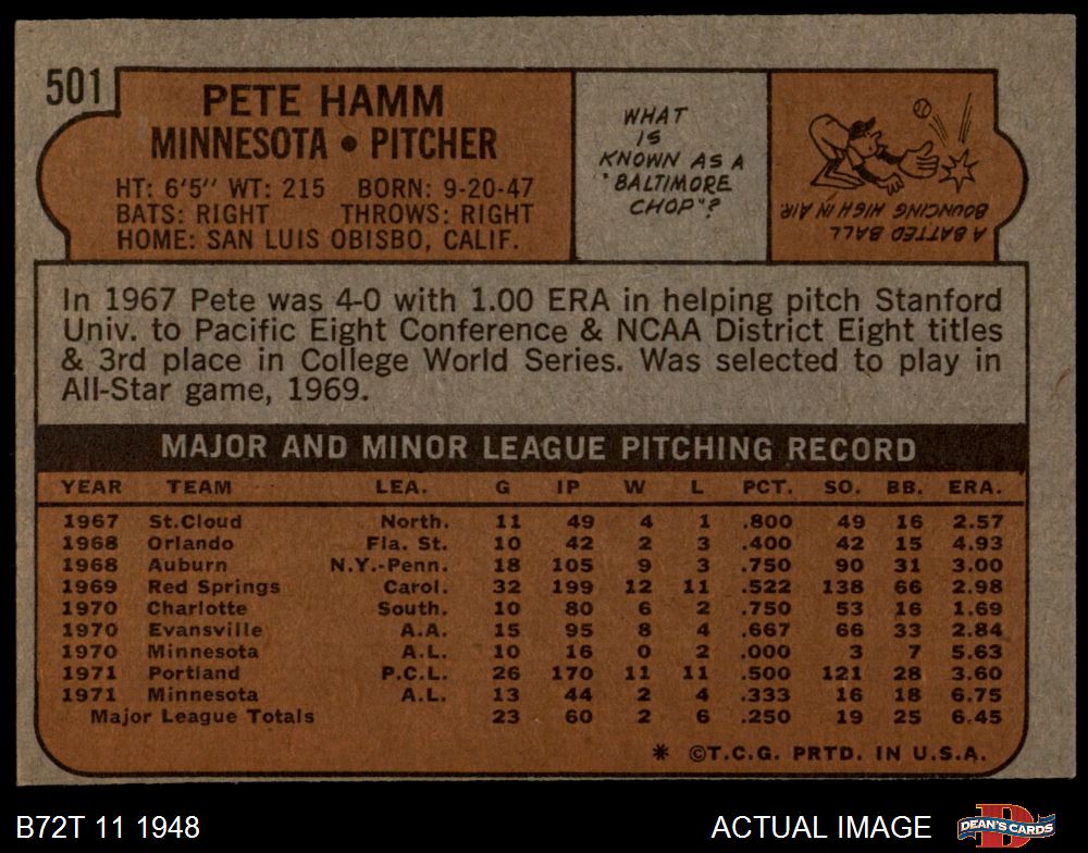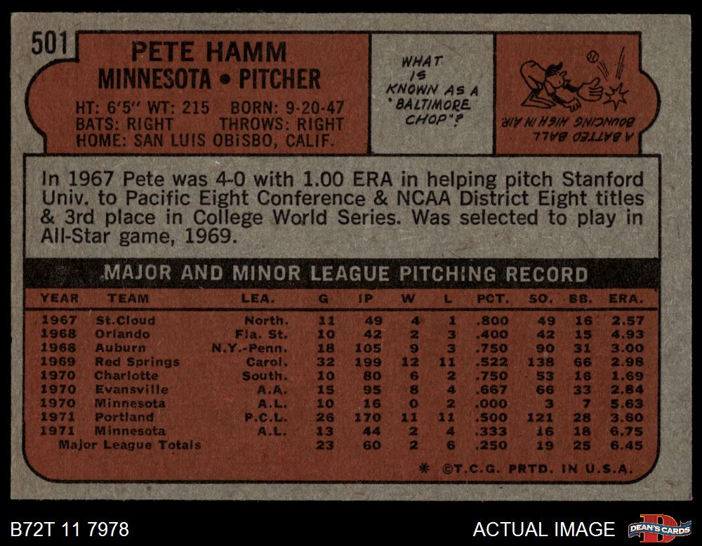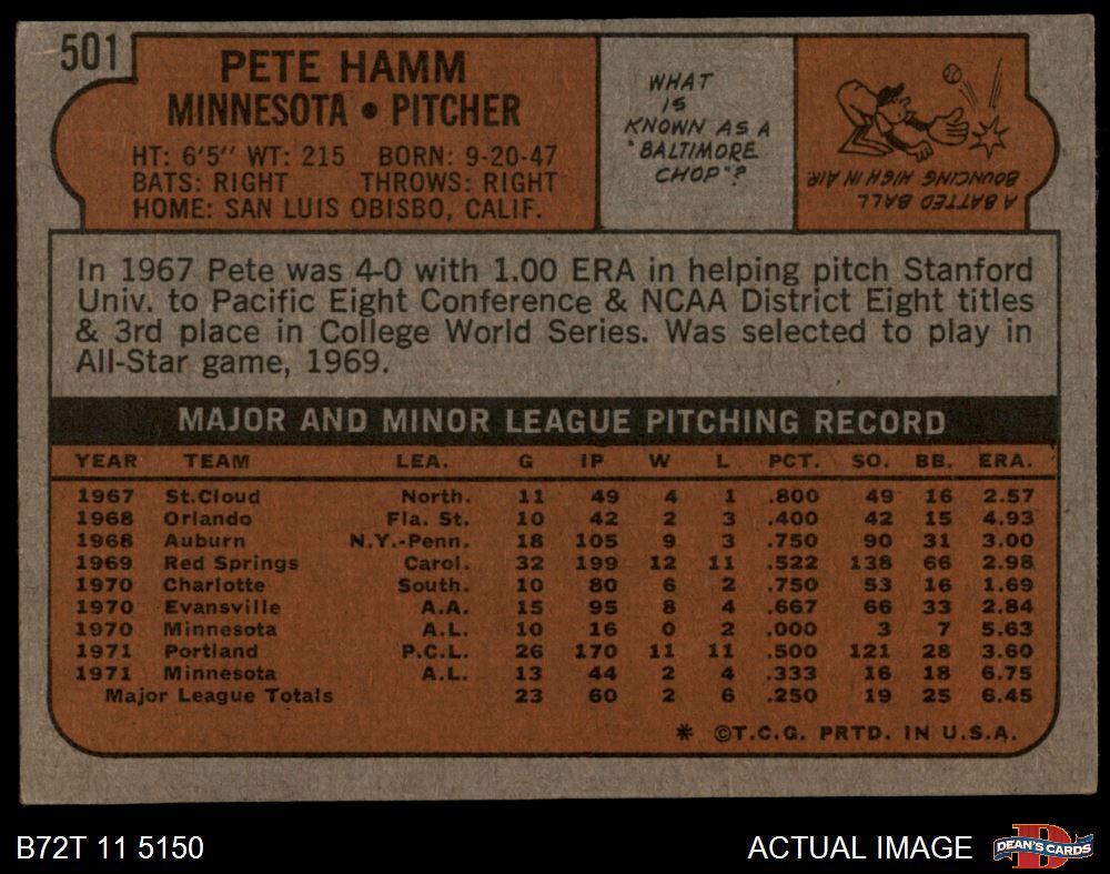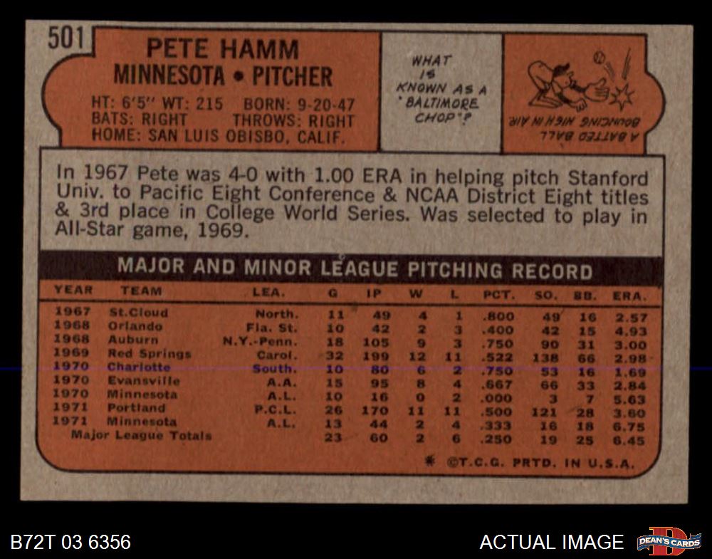 1972 Topps #501 Pete Hamm 4 - VG/EX
