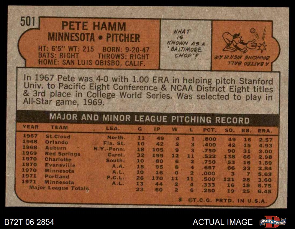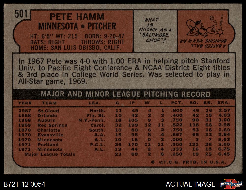 1972 Topps #501 Pete Hamm 6 - EX/MT