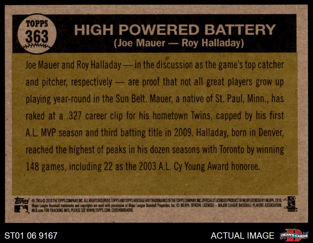 2010 Topps Heritage #363 - Joe Mauer / Roy Halladay High Powered Battery 8 - NM/MT