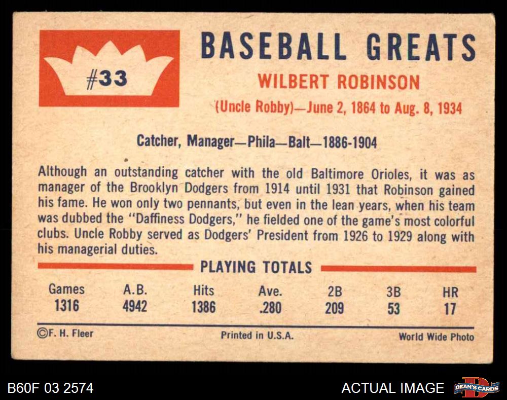 1960 Fleer #33 Wilbert Robinson 3 - VG