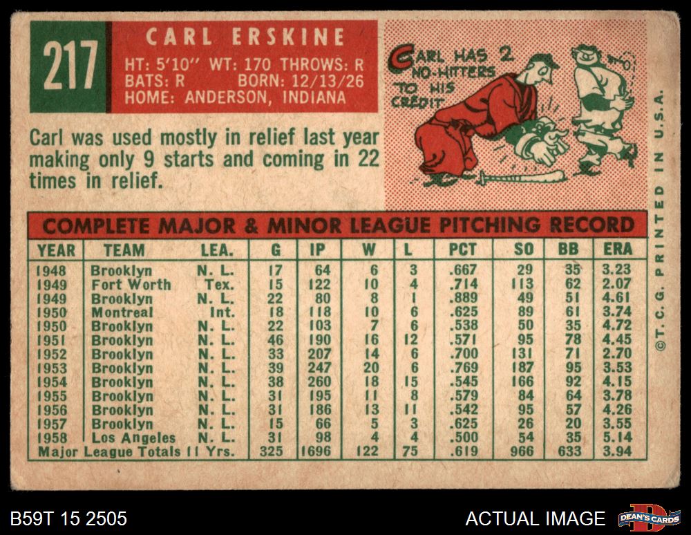 1959 Topps #217 Carl Erskine 2 - GOOD