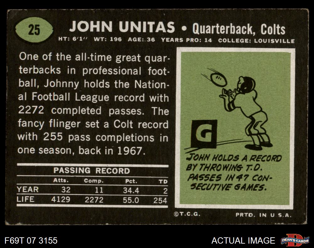 1969 Topps #25 Johnny Unitas 2 - GOOD