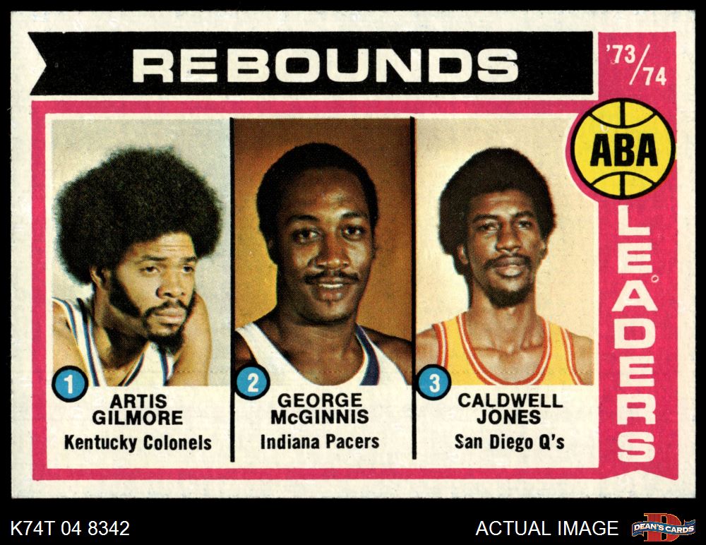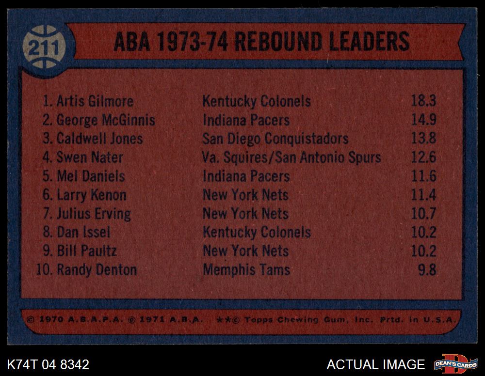 1974 Topps #211 - Artis Gilmore / George McGinnis / Caldwell Jones ABA Rebound Leaders 7.5 - NM+