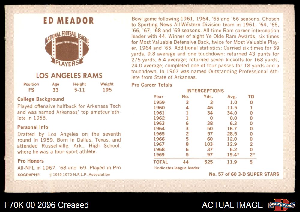 1970 Kellogg's #57 Ed Meador 3 - VG