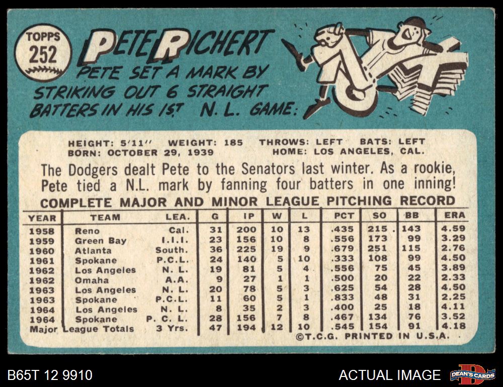 1965 Topps #252 Pete Richert 3.5 - VG+