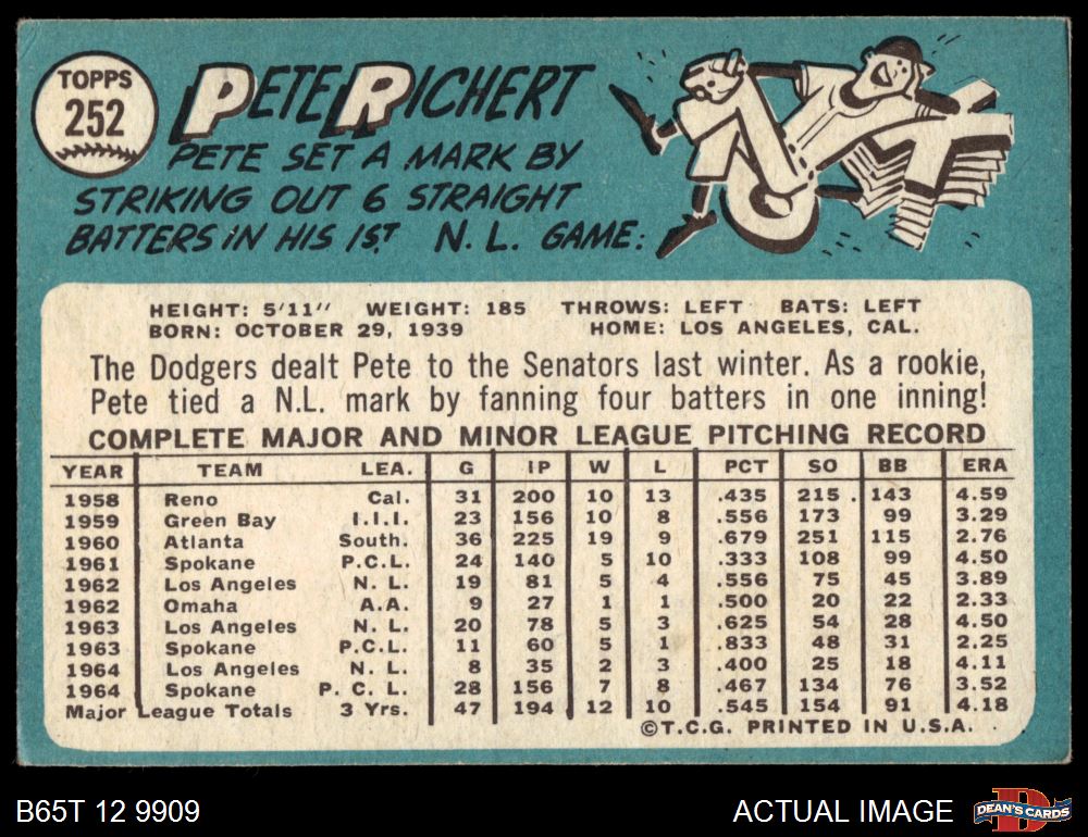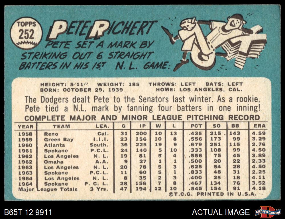 1965 Topps #252 Pete Richert 4 - VG/EX