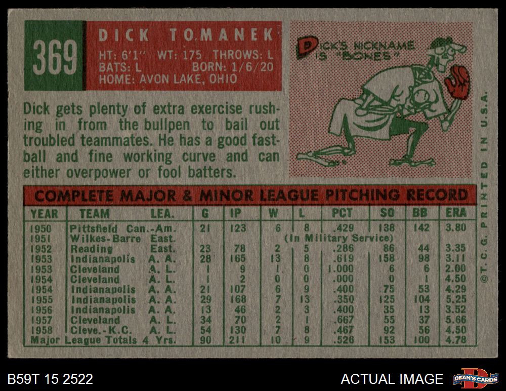 1959 Topps #369 Dick Tomanek 4 - VG/EX