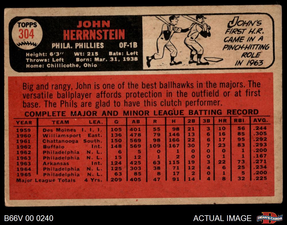 1966 Topps Venezuelan #304 John Herrnstein 3 - VG