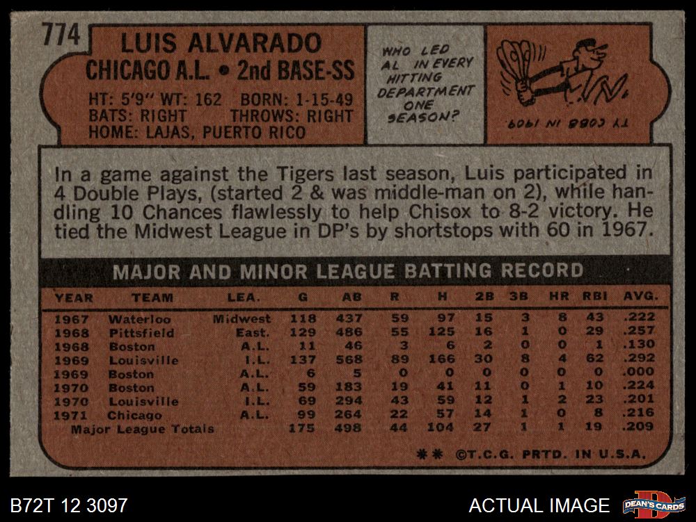 1972 Topps #774 Luis Alvarado 2 - GOOD