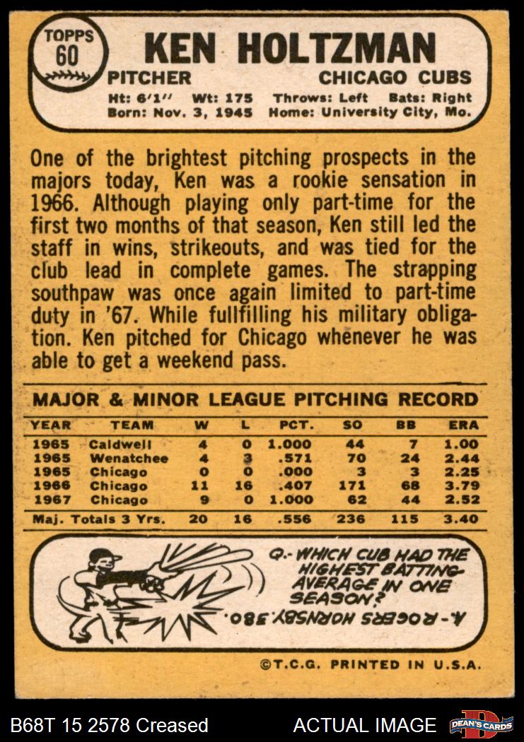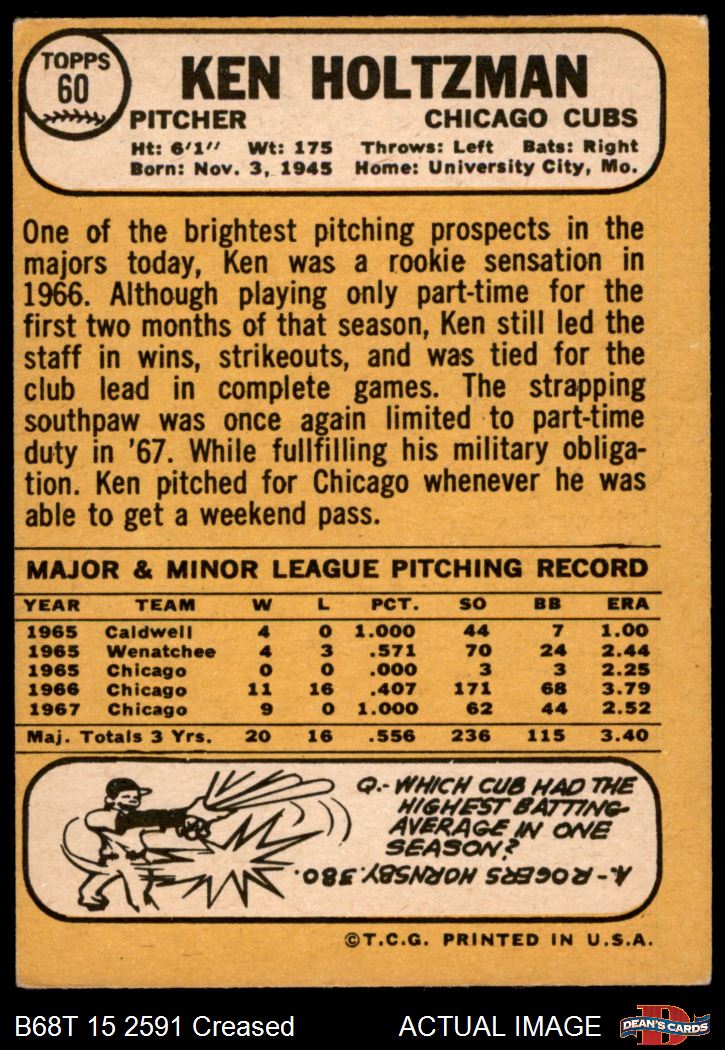 1968 Topps #60 A Ken Holtzman 3 - VG