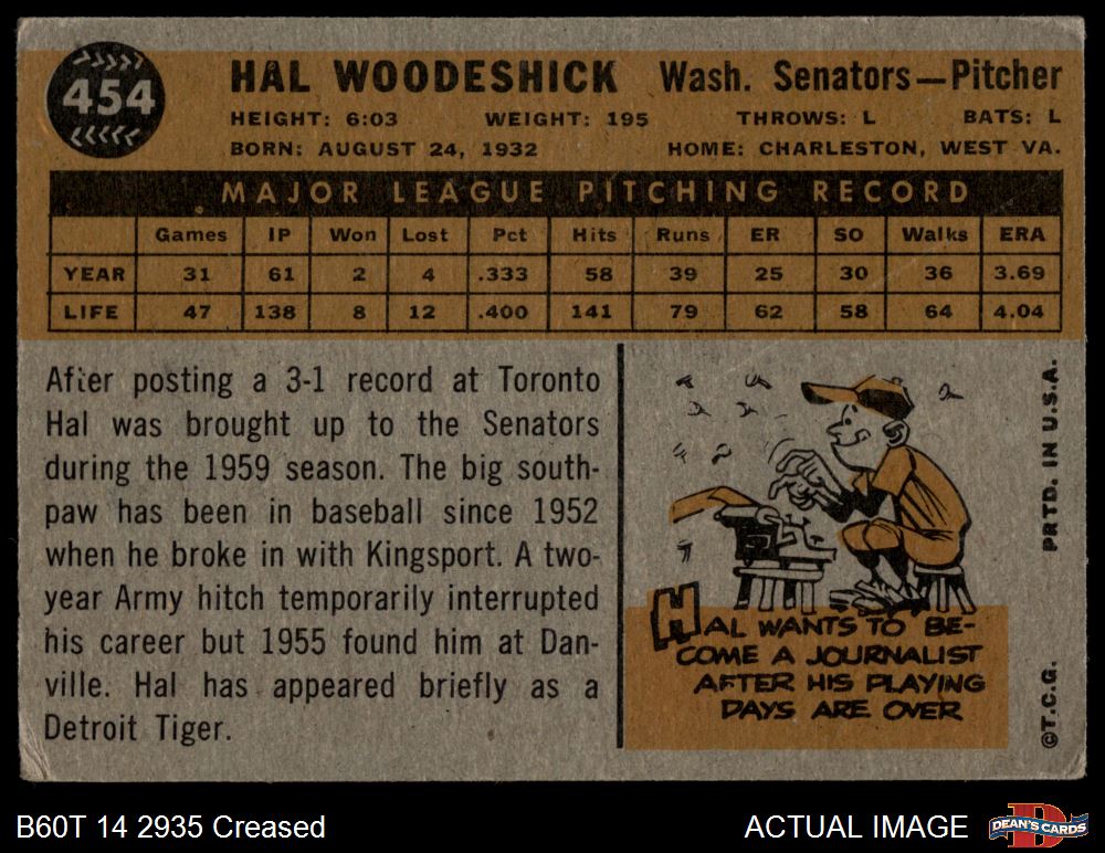 1960 Topps #454 Hal Woodeshick 2 - GOOD