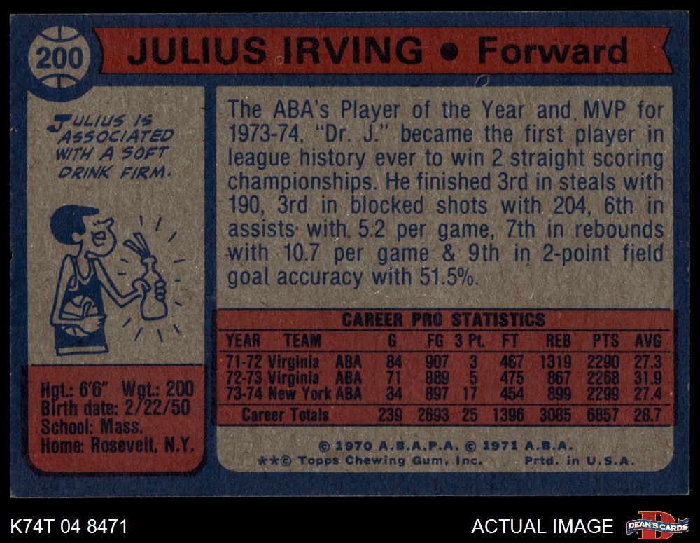 1974 Topps #200 Julius Erving 6 - EX/MT