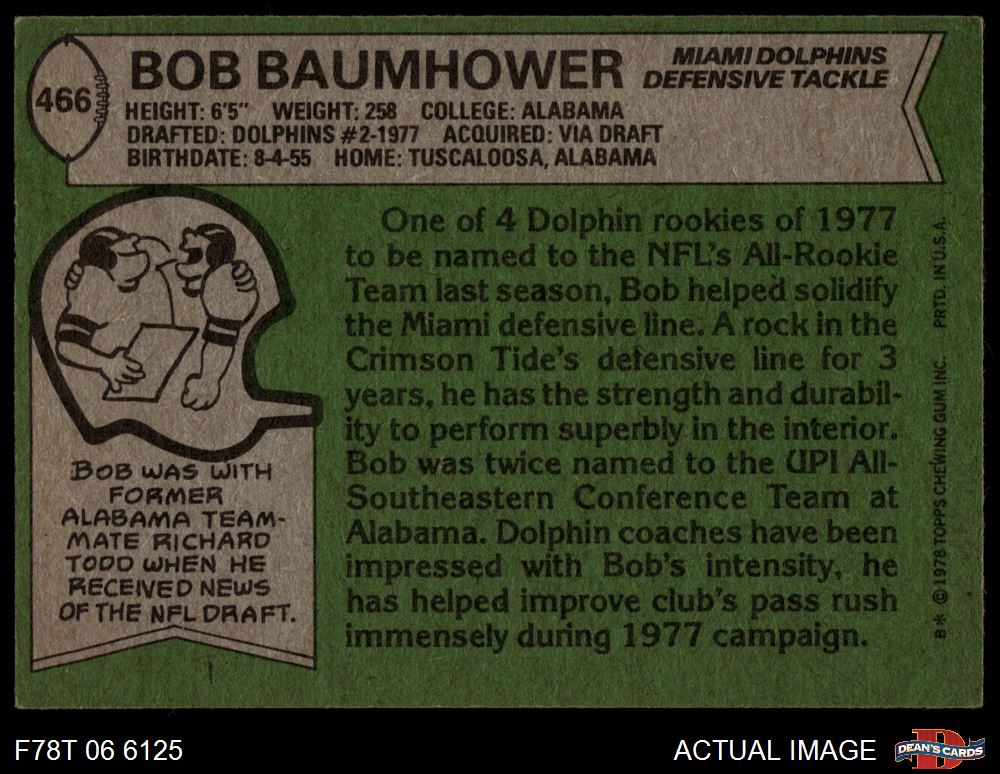 1978 Topps #466 Bob Baumhower 4 - VG/EX