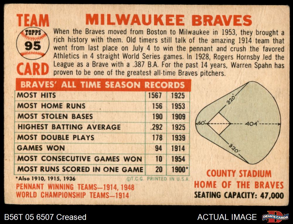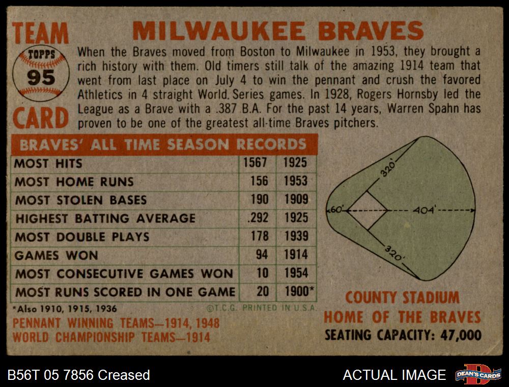 1956 Topps #95 CEN Braves Team 2 - GOOD