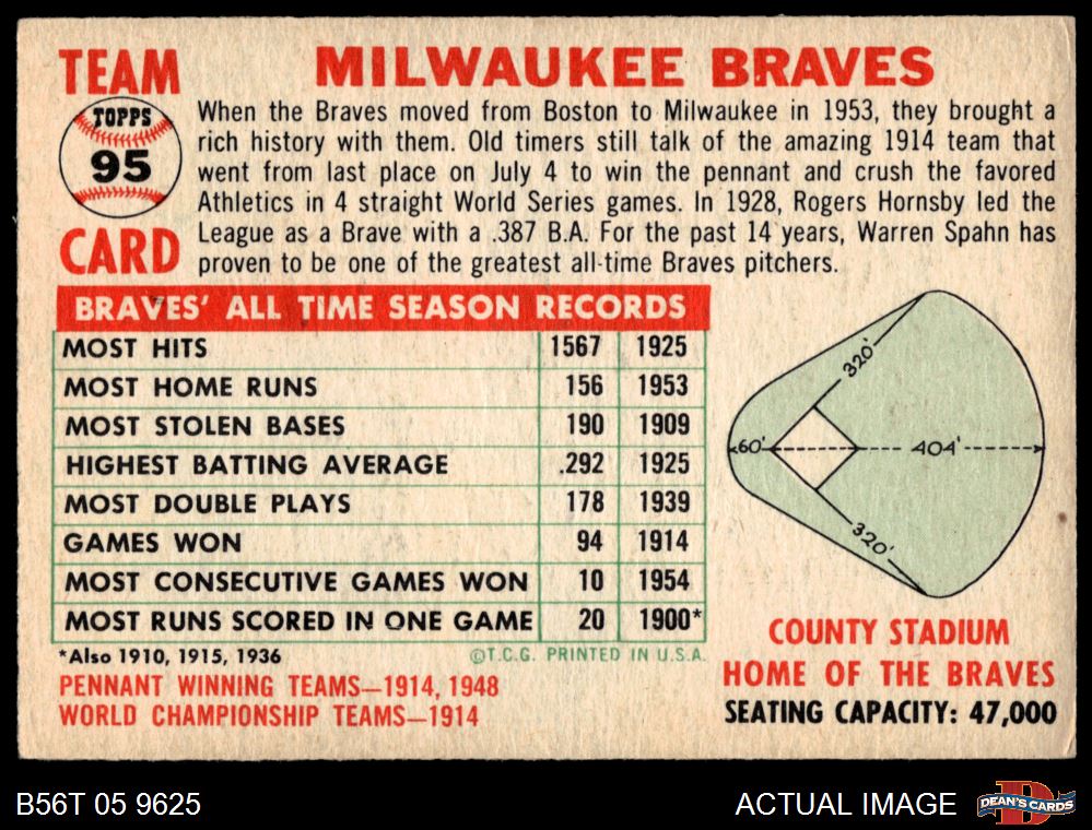1956 Topps #95 CEN Braves Team 4 - VG/EX