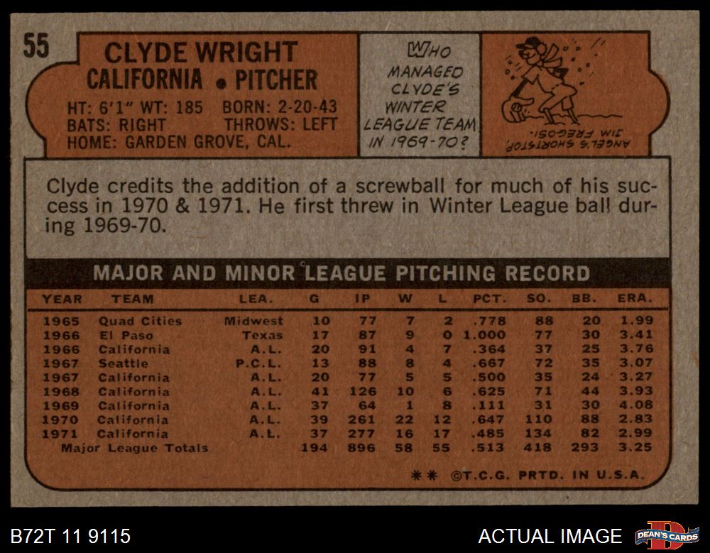 1972 Topps #55 Clyde Wright 6 - EX/MT