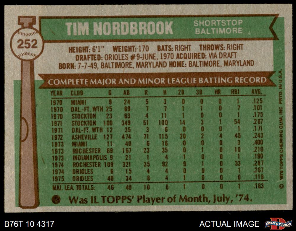 1976 Topps #252 Tim Nordbrook 5 - EX