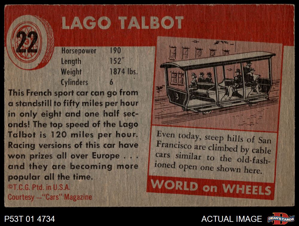 1954 Topps World on Wheels #22 Lago Talbot 4 - VG/EX