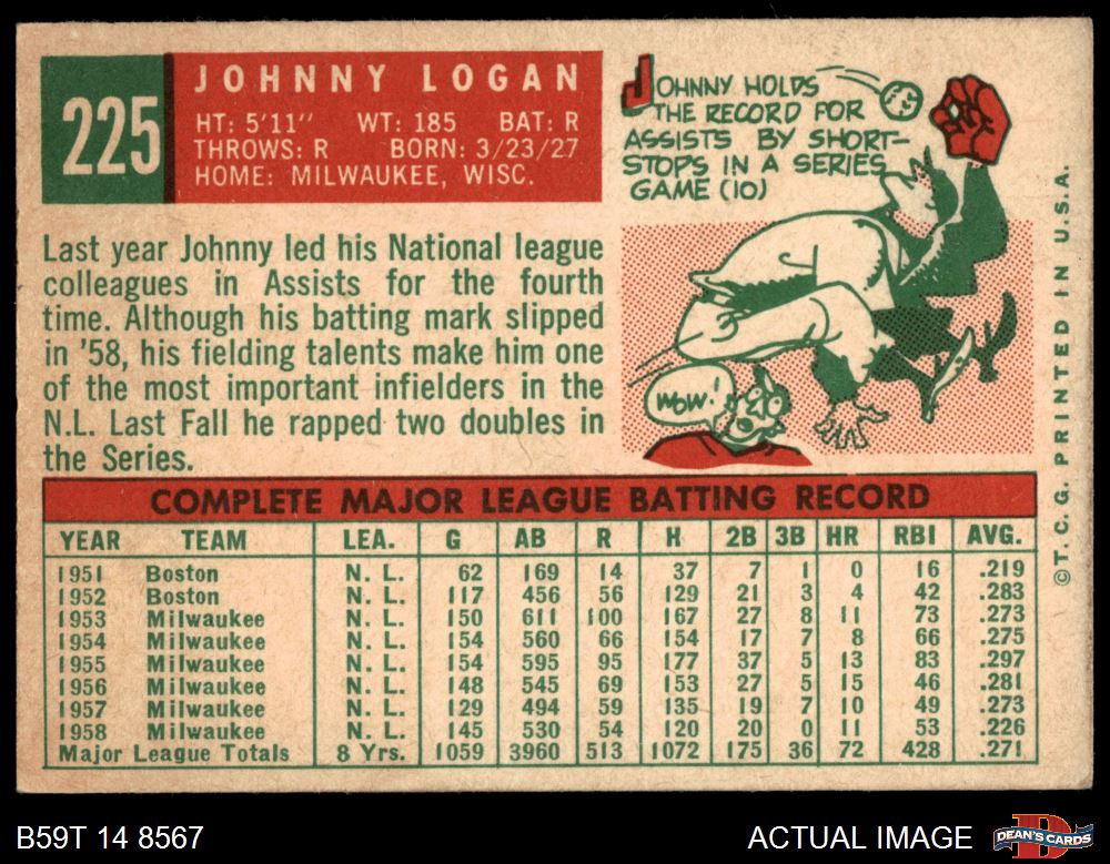 1959 Topps #225 Johnny Logan 4 - VG/EX