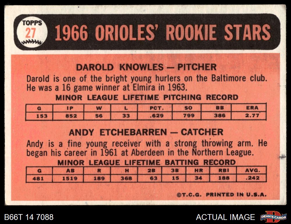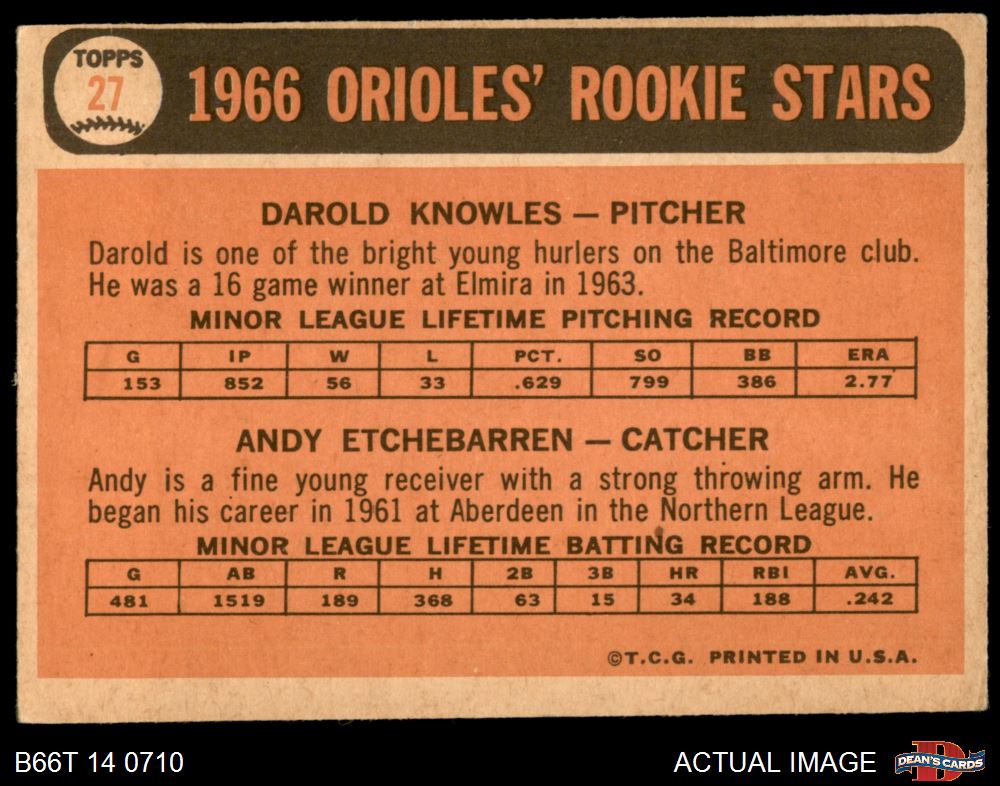 1966 Topps #27 - Andy Etchebarren / Darold Knowles Orioles Rookies 3 - VG