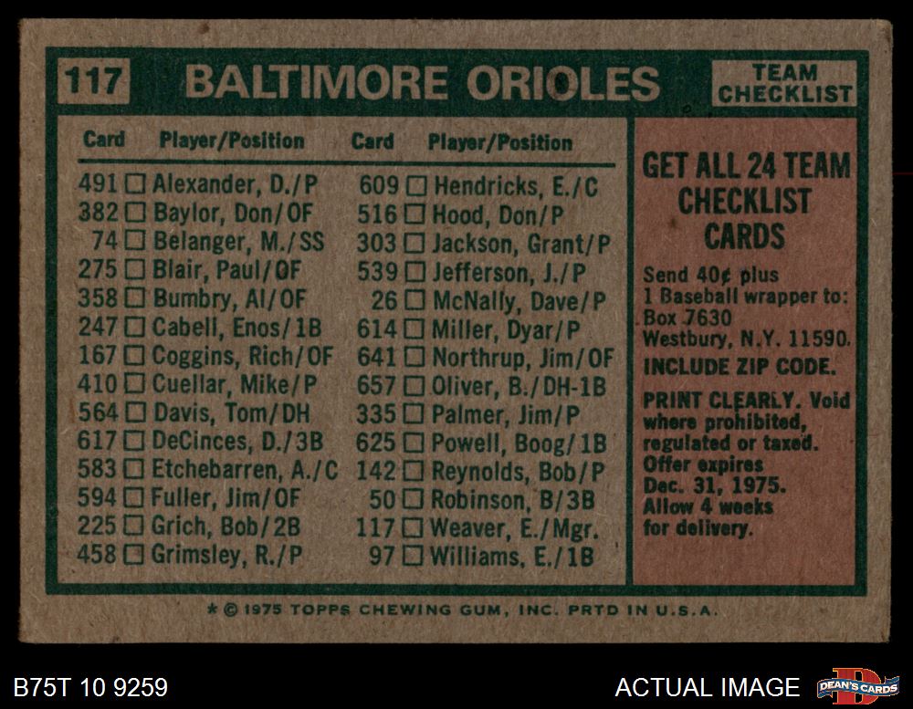 1975 Topps Baseball Cards (14,254 available)1975 Topps Orioles (749 available)
