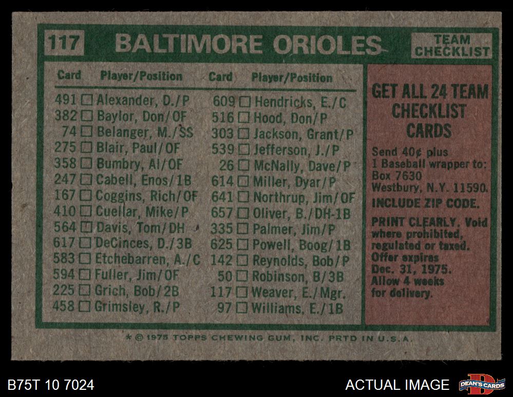 1975 Topps #117 - Earl Weaver Orioles Team Checklist 4 - VG/EX