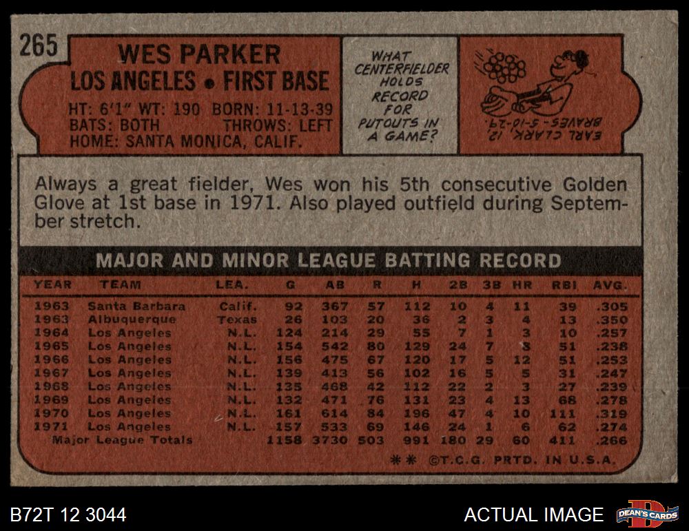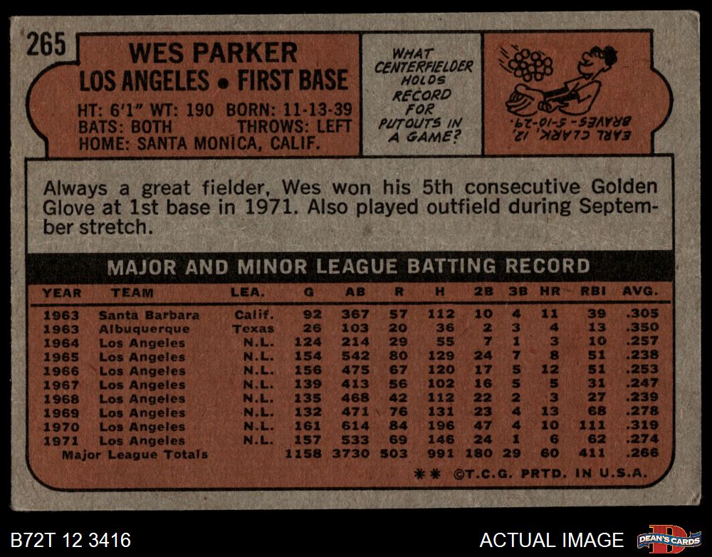 1972 Topps #265 Wes Parker 1.5 - FAIR