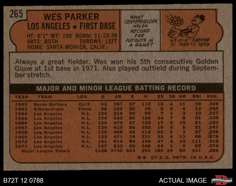 1972 Topps #265 Wes Parker 5 - EX