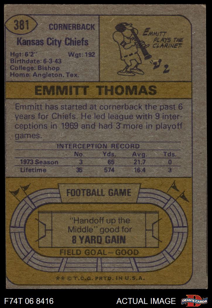 1974 Topps #381 Emmitt Thomas 3 - VG