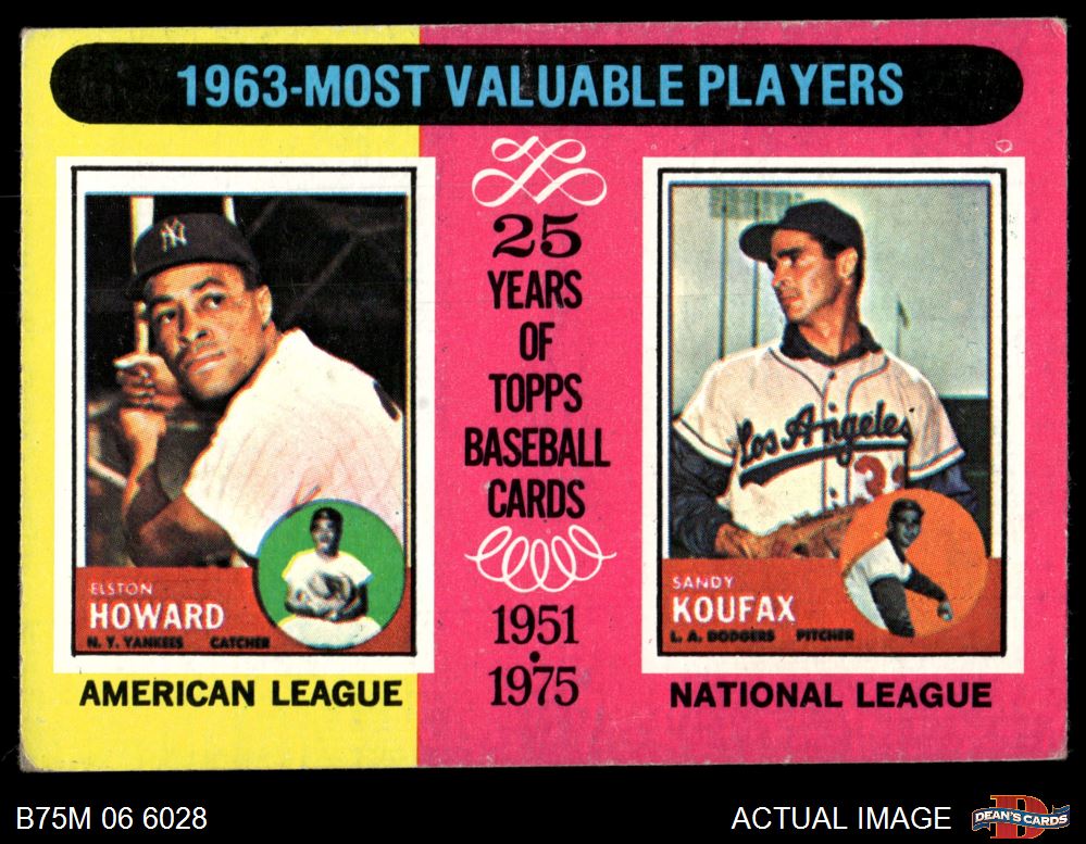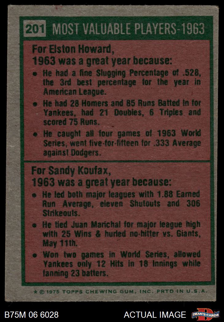 1975 Topps Mini #201 - Sandy Koufax / Elston Howard 1963 MVPs 3 - VG