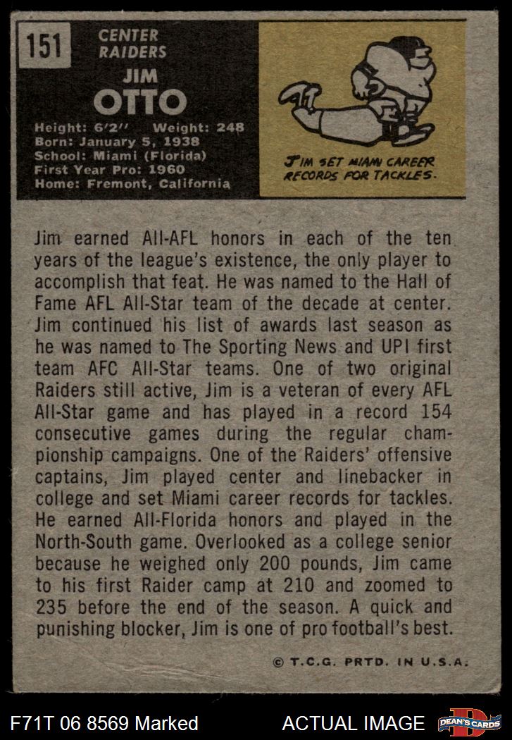 1971 Topps #151 Jim Otto Front Thumbnail