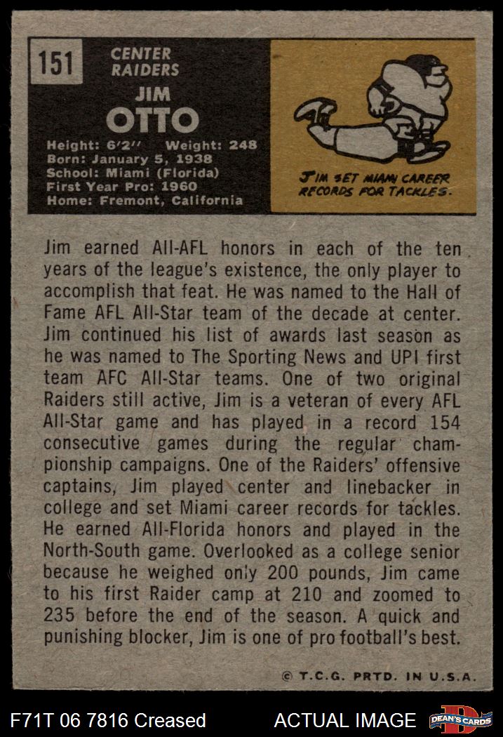 1971 Topps #151 Jim Otto 3 - VG