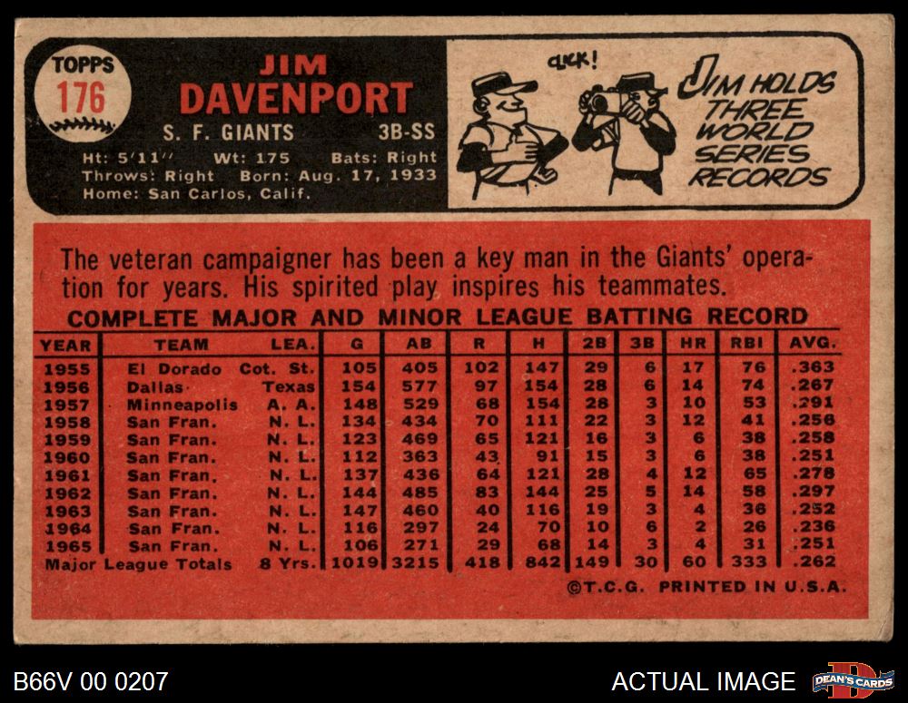 1966 Topps Venezuelan #176 Jim Davenport 4 - VG/EX