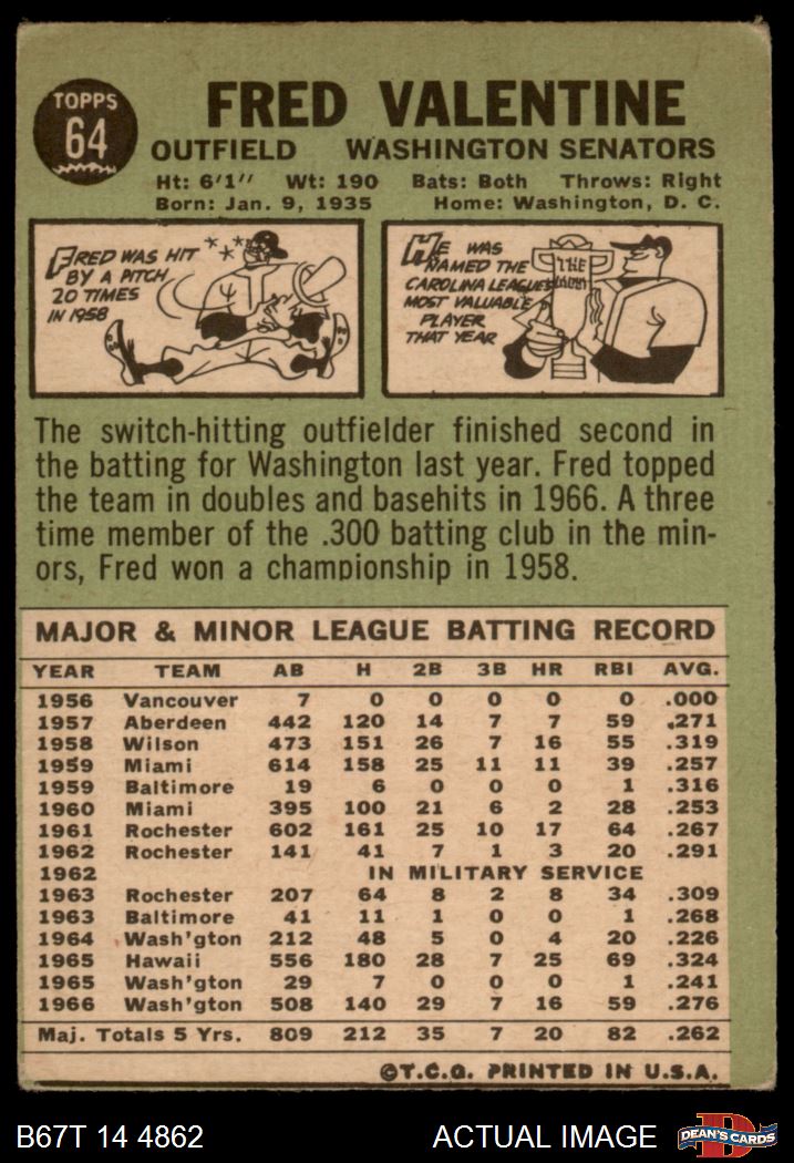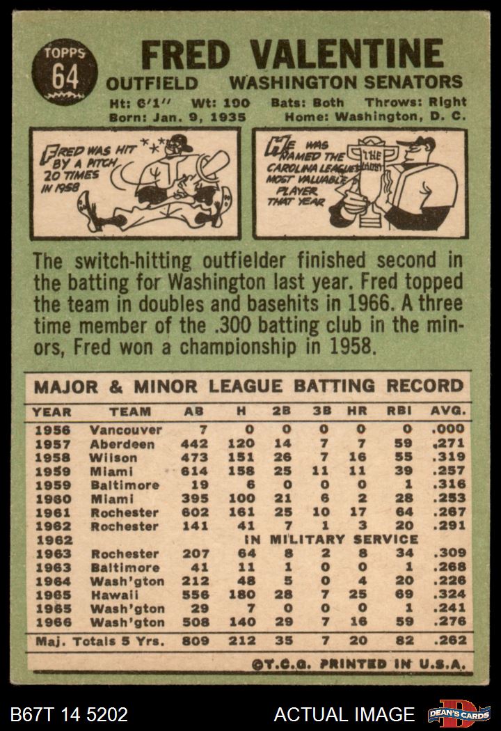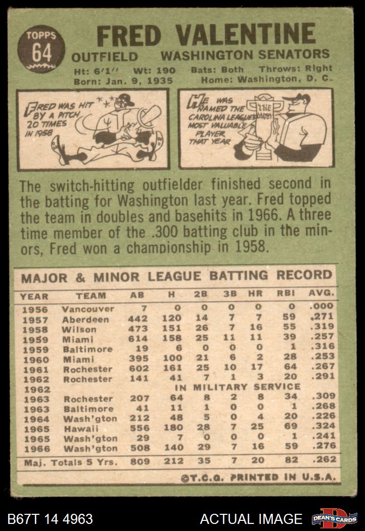 1967 Topps #64 Fred Valentine 2 - GOOD