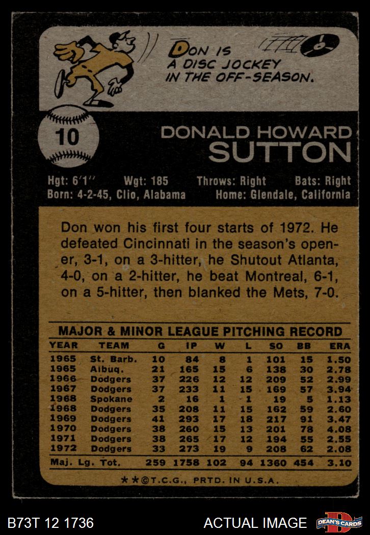 1973 Topps #10 Don Sutton 3 - VG