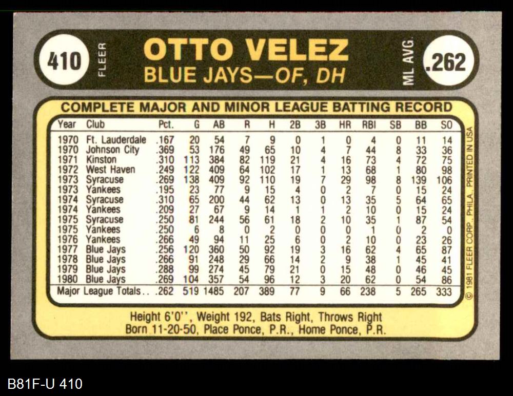 1981 Fleer Baseball Cards (4,688 available)1981 Fleer Blue Jays (180 available)