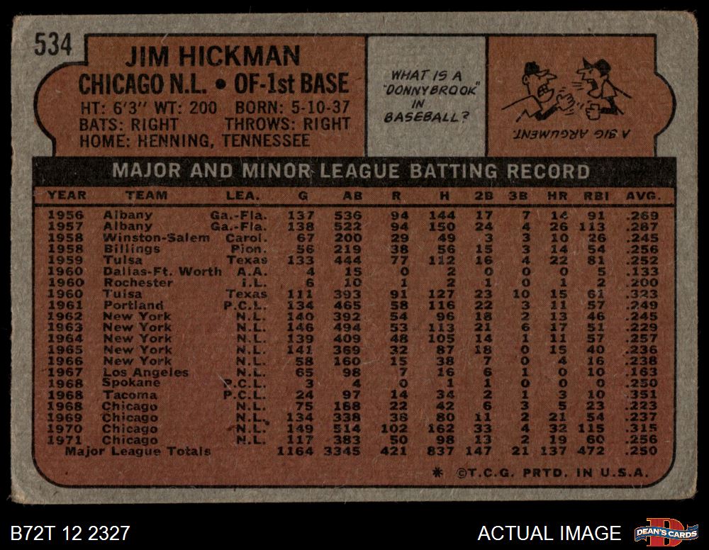 1972 Topps #534 GRN Jim Hickman 1 - POOR