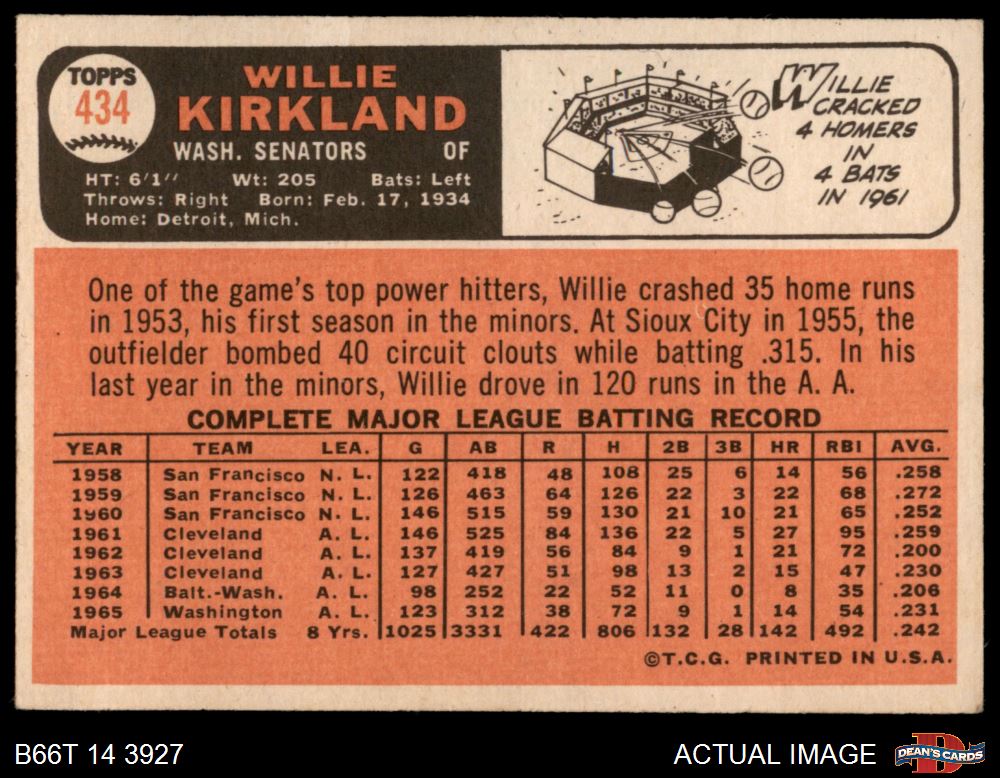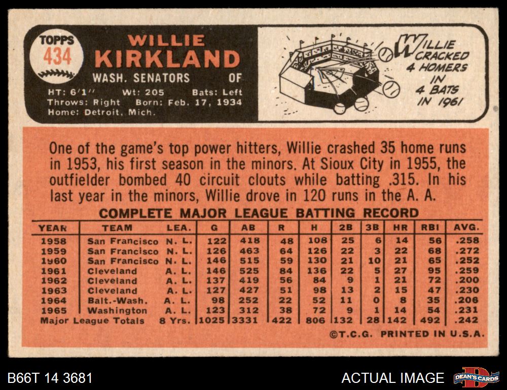 1966 Topps #434 Willie Kirkland 4 - VG/EX