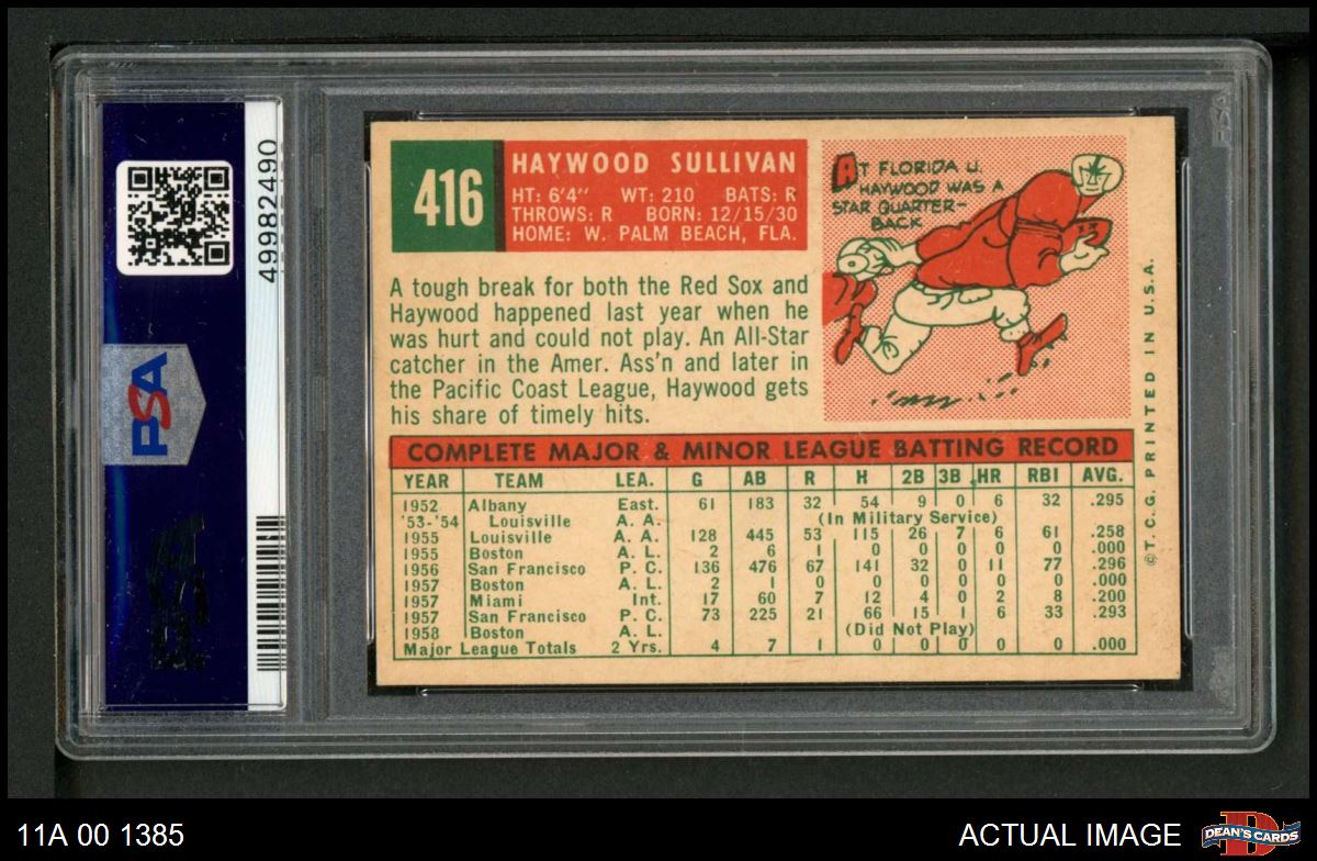 1959 Topps #416 CRL Haywood Sullivan PSA 8 - NM/MT