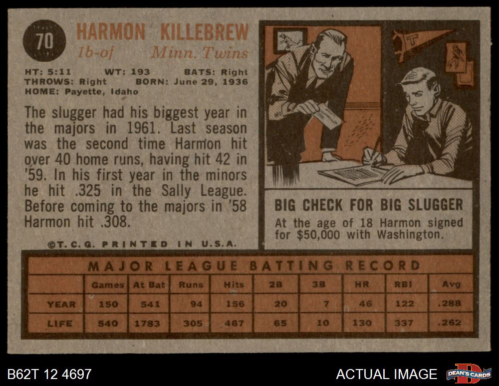 1962 Topps #70 Harmon Killebrew 3 - VG