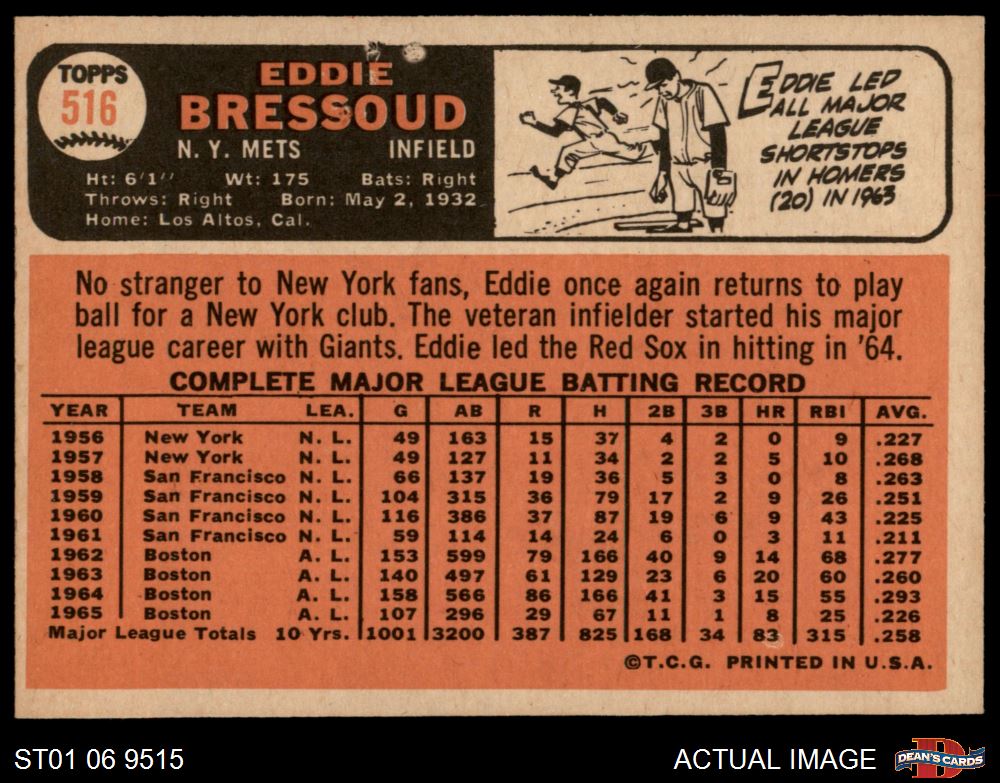 1966 Topps #516 Eddie Bressoud 7 - NM