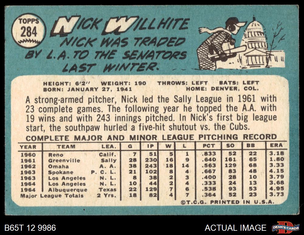 1965 Topps #284 Nick Willhite 4.5 - VG/EX+