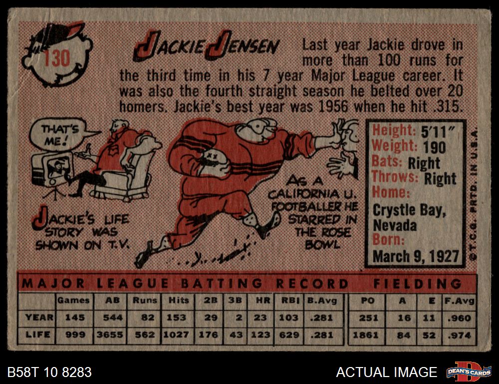 1958 Topps #130 Jackie Jensen 1.5 - FAIR
