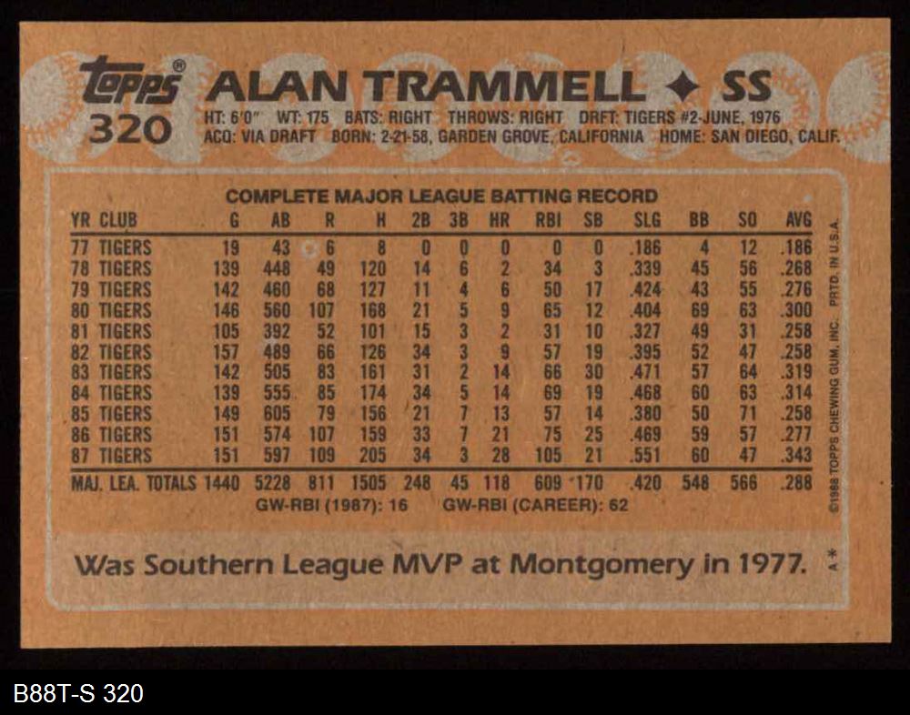 1988 Topps #320 Alan Trammell