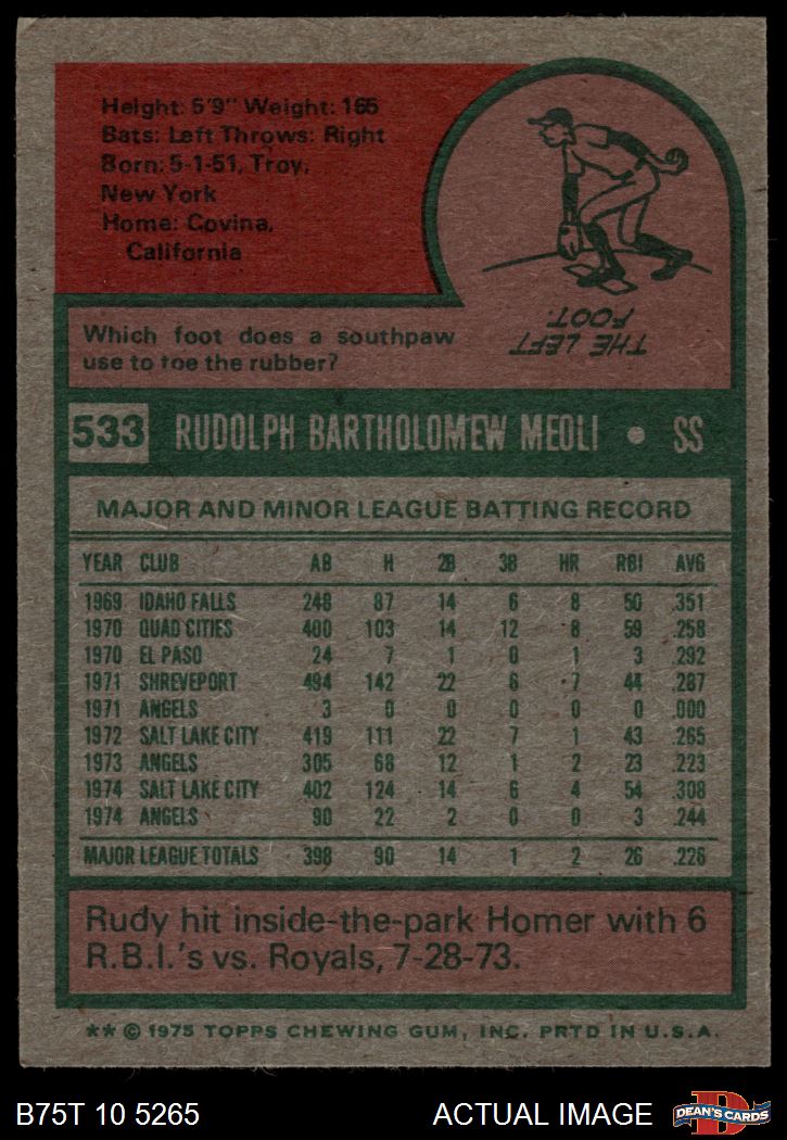 1975 Topps #533 Rudy Meoli 5.5 - EX+