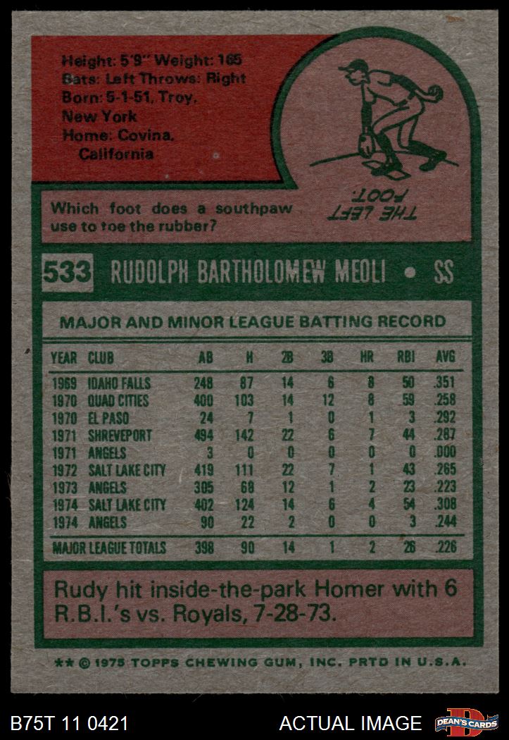 1975 Topps #533 Rudy Meoli 6.5 - EX/MT+