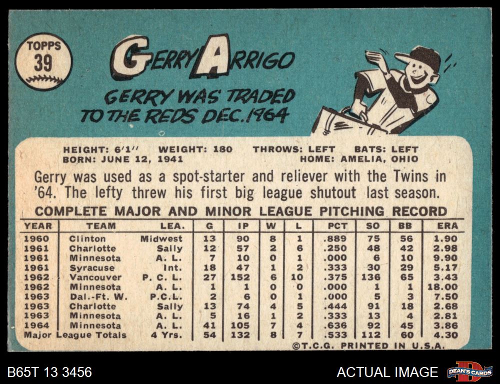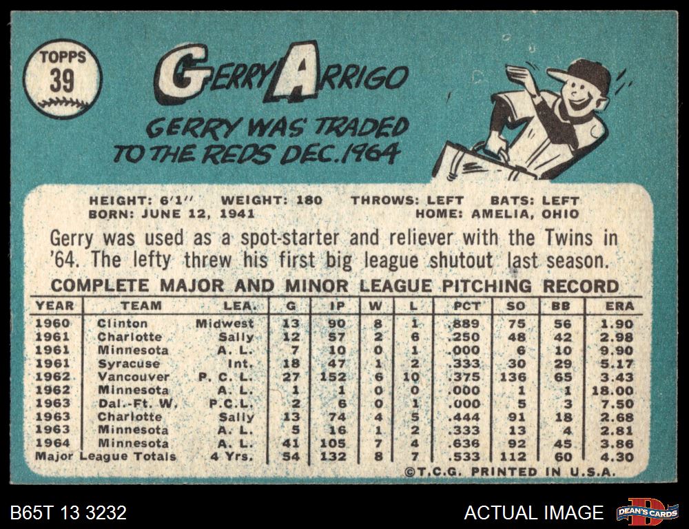 1965 Topps #39 Gerry Arrigo