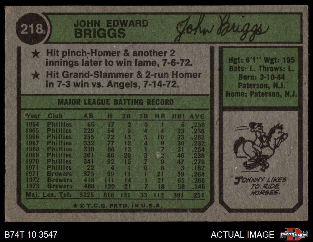 1974 Topps #218 Johnny Briggs 3 - VG